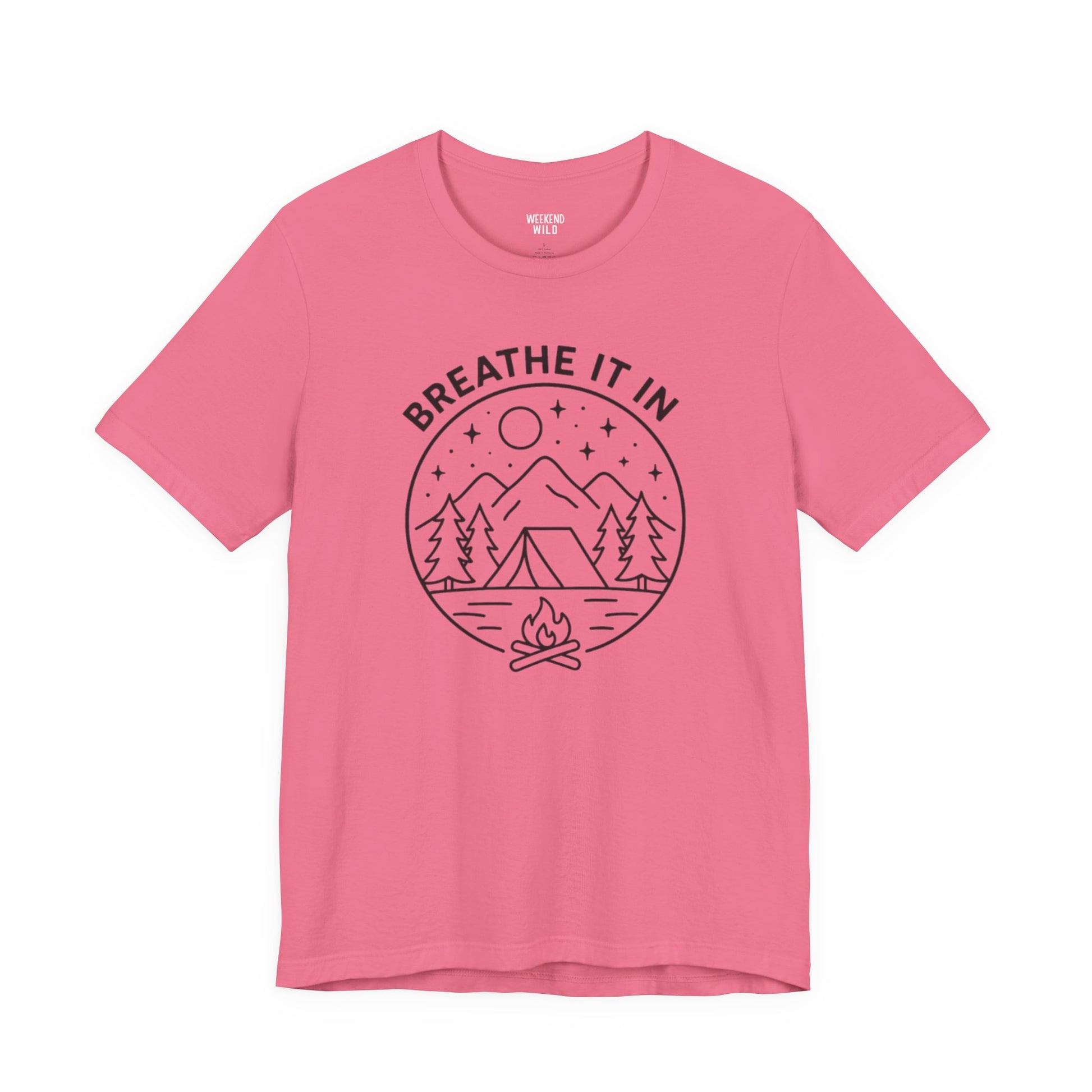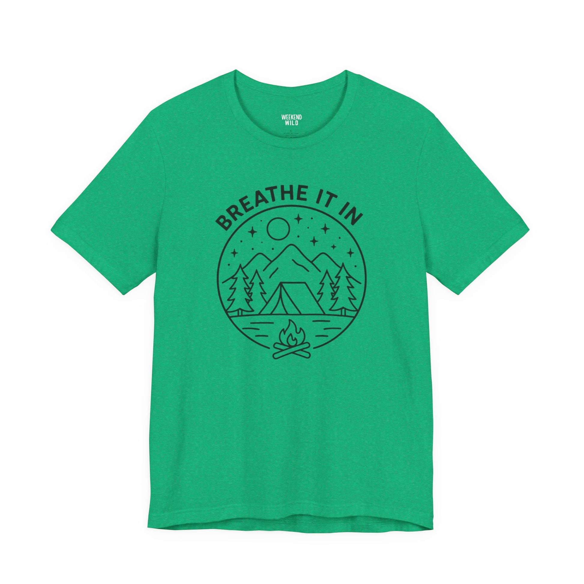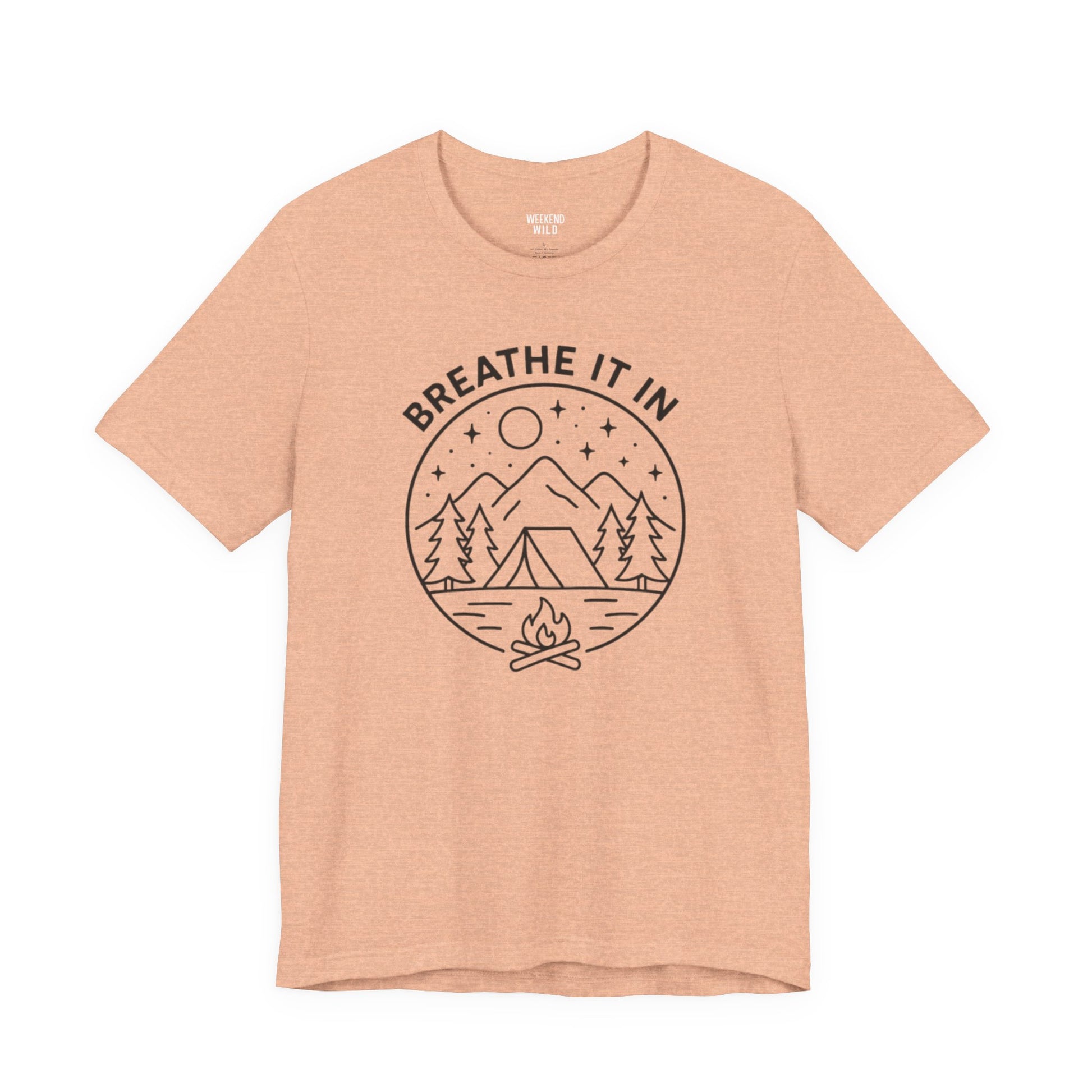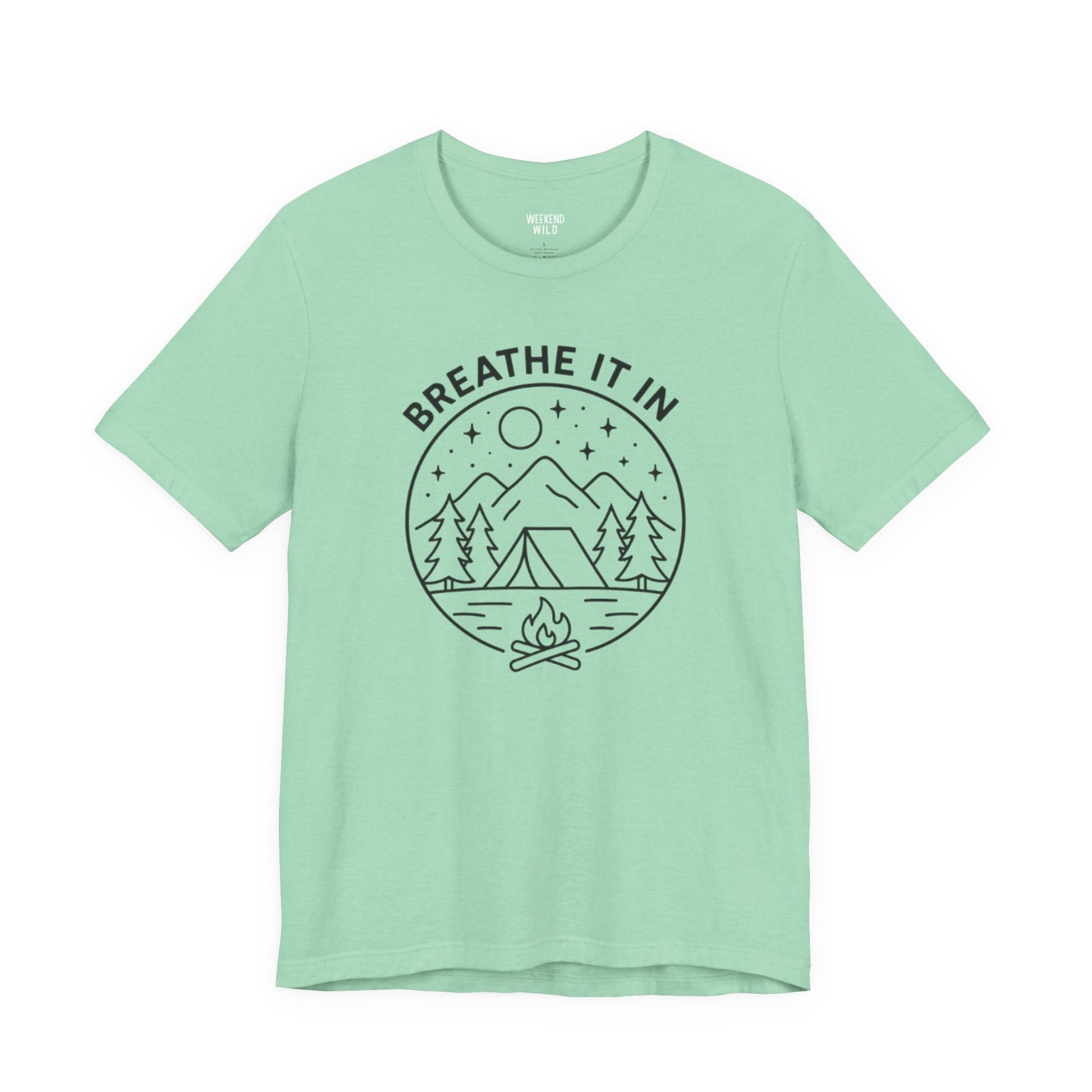 Inspired by quiet trails, crisp air, and moments where everything feels a little lighter, Breathe It In represents what happens when you trade noise for nature. The line art creates a scene featuring mountains, trees, and a glowing campfire that captures that feeling of grounding yourself in the outdoors and taking a breath you didn't realize you needed.